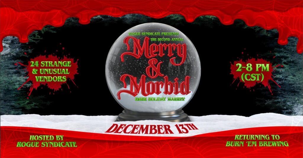 Burn ‘Em Brewing’s desire to comfort the disturbed and disturb the comfortable is bringing back the Merry & Morbid Dark Holiday Market this Saturday to the brewery! Two dozen local artists are putting a spooky twist on the Christmas season to deliver crafts you won’t find anywhere else. Learn more here.