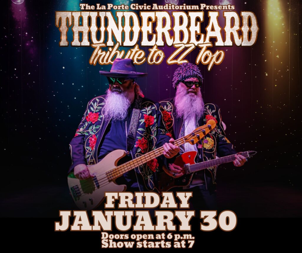 ZZ Top tribute ThunderBeard is taking the stage at the La Porte Civic Auditorium this Friday for a trip through some of the rock band’s greatest hits! ThunderBeard does more than capture the sound of ZZ Top – they’re just as sharply dressed too! Tickets are available online. Learn more here.