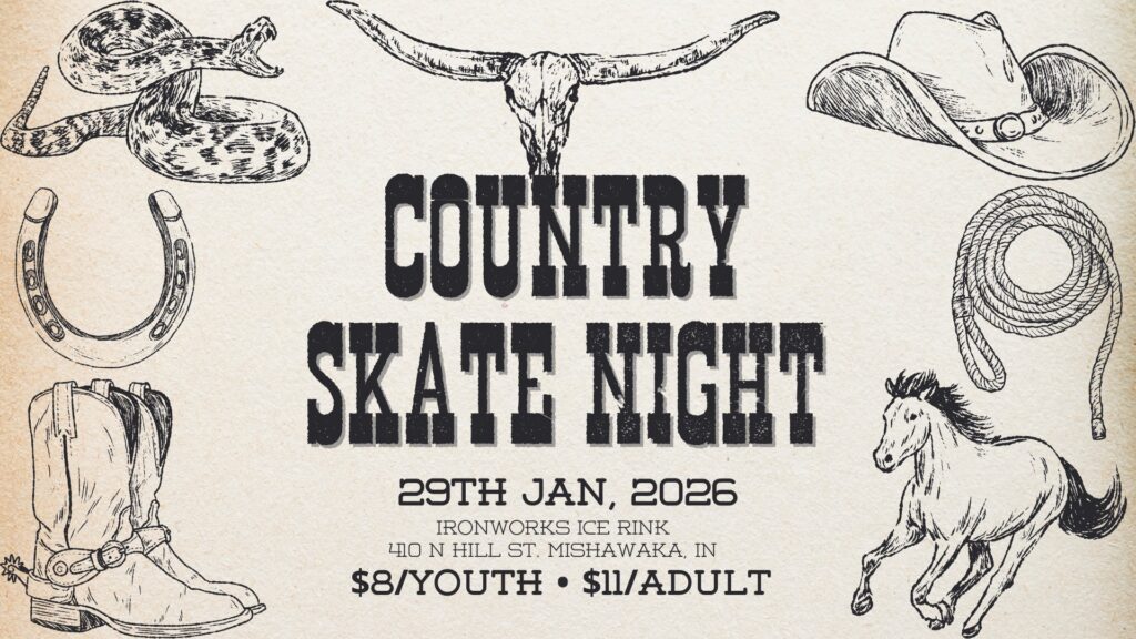 The Ironworks Ice Rink is moseying on over to the rodeo this Thursday for the Mishawaka Parks Country Skate Night! With the latest and greatest country tunes floating through the rink, you’re in for a fun night of skating. Learn more here.