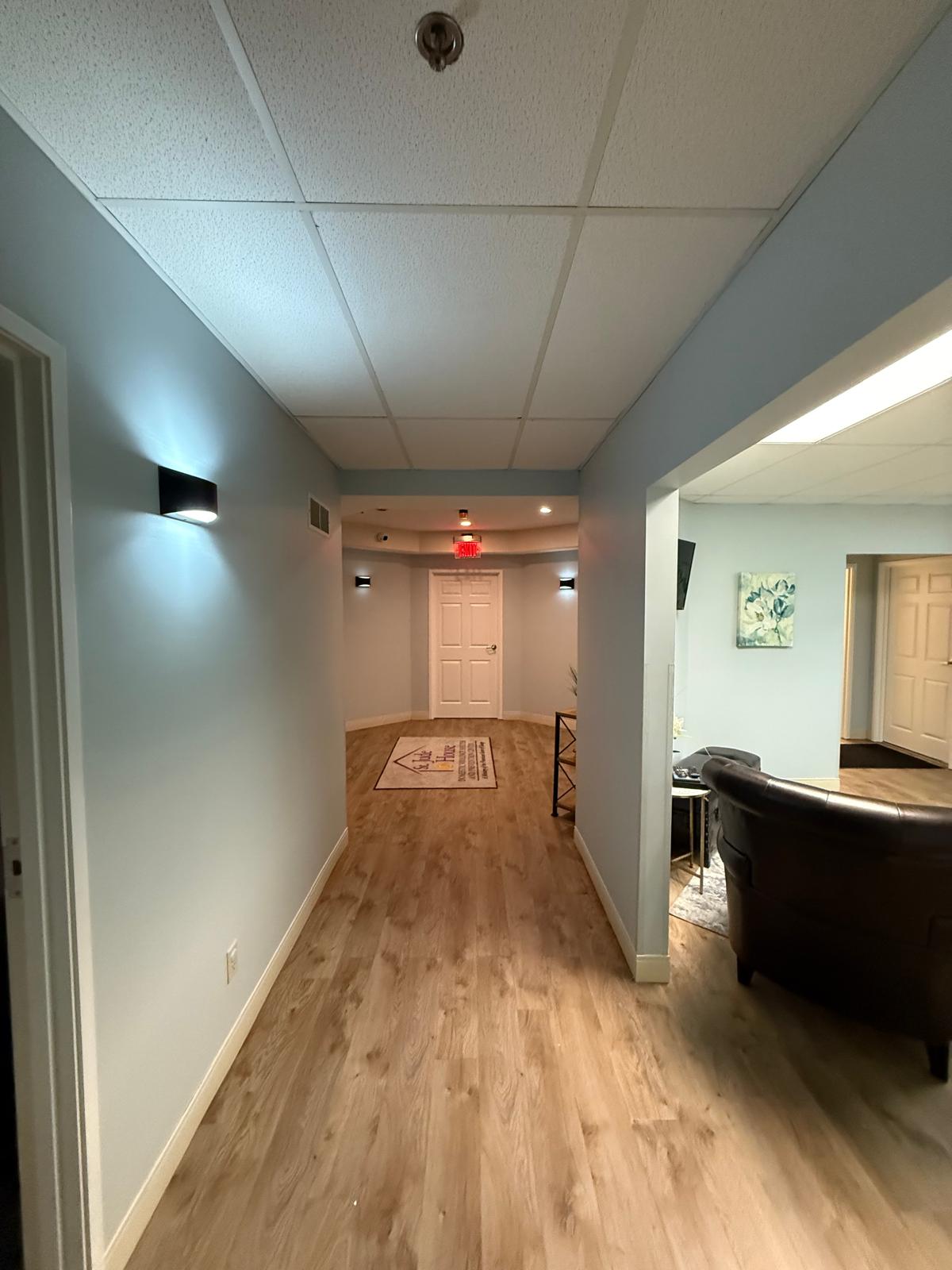 As part of the renovation project, CertaPro repainted St. Jude House’s lobby, corridors, and dining room, replacing the darker gray tones with light yellows and blues. Protective corner guards and durable wall coverings were also installed in high-traffic areas to ensure the refresh lasts for years to come.