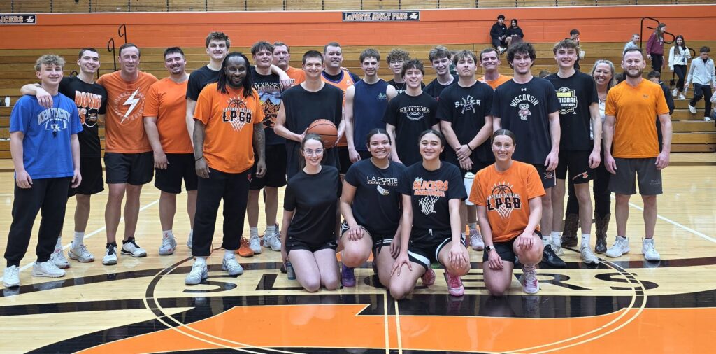 The yearly La Porte High School (LPHS) Staff versus Senior Basketball Game was held on Wednesday April 1, and the staff won with a score of 102-70.