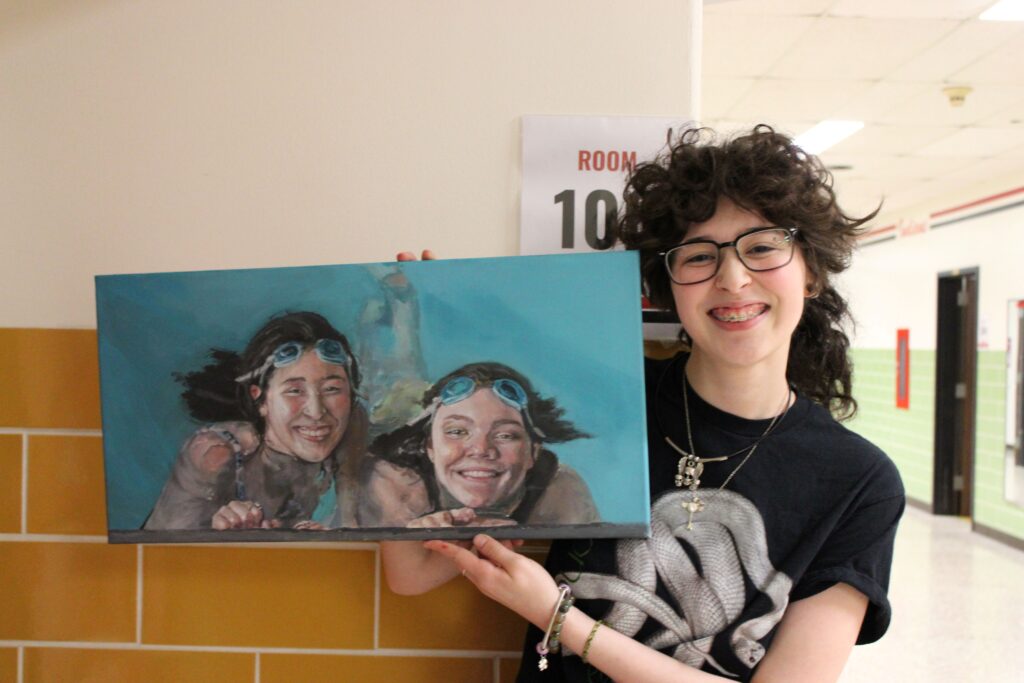 “It’s an acrylic painting of me and my best friend Taylor in a pool. It’s very fun,” Johnson said.