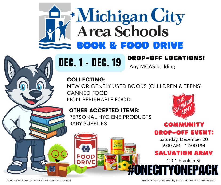 The Michigan City High School Student Council is once again coordinating a city-wide “drive-through” food drive. Students and staff throughout Michigan City Area Schools are collecting food, and the community is invited to participate.