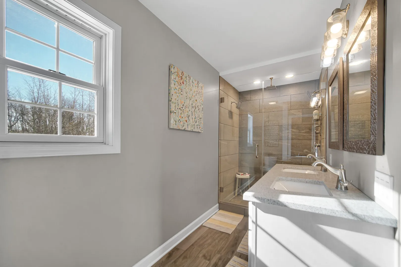 Discover your dream home in this beautifully remodeled ranch featuring 5 bedrooms and 4.5 baths, including THREE bedrooms with their own PRIVATE EN-SUITES bathrooms. Updated over the past 3 years with TOP QUALITY materials and exceptional ATTENTION TO DETAIL, this home offers modern comfort on a spacious 2.75 ACRE LOT, complete with a large workshop, perfect for hobbies, storage, or major projects. Step onto the covered front porch and into a generous foyer that opens to the living room. The living/dining area will quickly become a favorite gathering spot with its hardwood floors, cathedral ceilings, fireplace, and peaceful VIEWS OF NATURE. The heart of the home is the stunning MODERN KITCHEN, showcasing quartz countertops, custom cabinetry, and a large pantry. The primary suite includes a beautifully designed en-suite bath and walk-in closet. Need more closet space? A nearby bedroom has been transformed into a walk-in closet but can easily be converted back if preferred. On the opposite wing, another private en-suite bedroom offers its own retreat with a full bath and three closets. The main level also includes a half bath, a full bath, and a convenient laundry room. Upstairs, you’ll find a versatile office/library that can be customized to suit your needs, kept comfortable year-round with a newly added mini-split HVAC system. The DAYLIGHT basement delivers even more living space, including two bedrooms, a 3/4 bath, a recreation room, and an exercise area–perfect for guests, hobbies, or additional living quarters. Outdoors, the 2.75-acre lot provides endless room to explore, relax, or entertain. The 64′ x 48′ HEATED SHOP with dedicated 200-amp service is ideal for anyone needing serious workspace or storage. Despite the private setting, the property is conveniently located near downtown Valparaiso, schools, amenities, and major roadways–offering the perfect blend of seclusion and accessibility. This fully remodeled ranch is a rare find. Please see attachments.