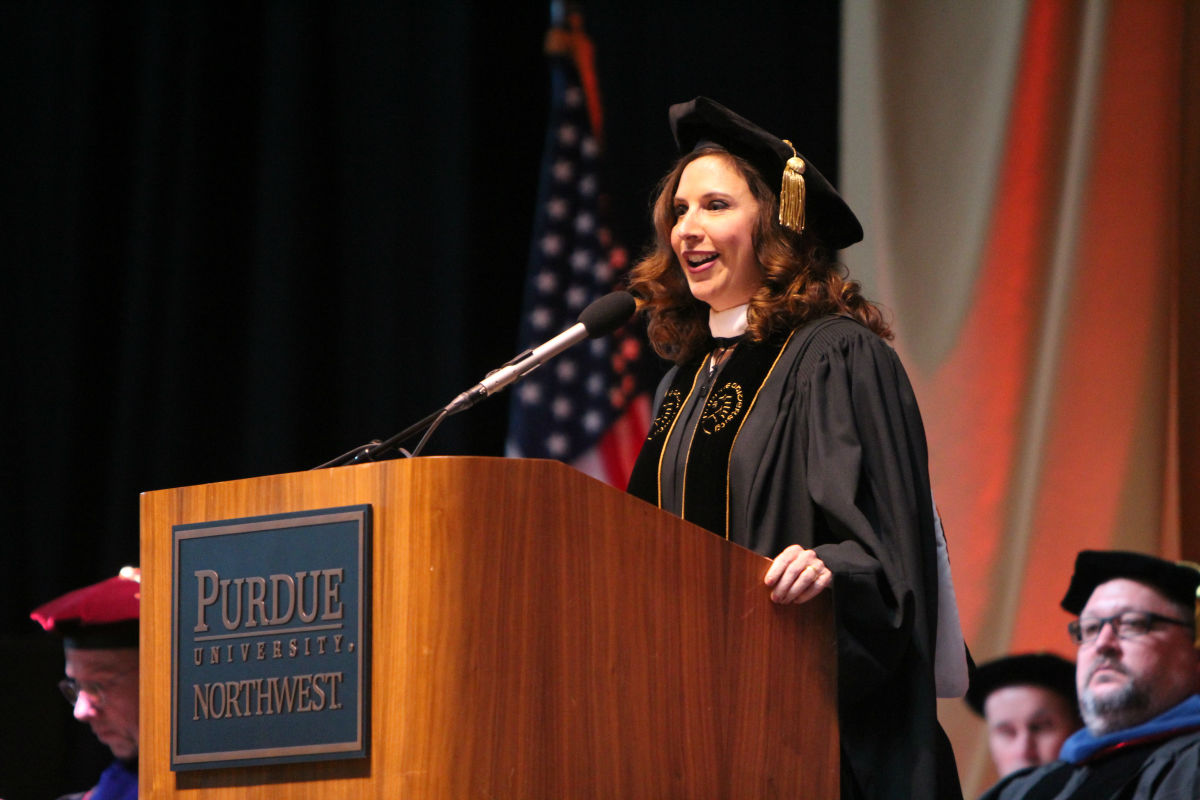 Hale is a graduate of the PNW Westville Campus and used her experiences to reach out to the students. “I was one of you,” she said, as she discussed the “hustle” graduates likely learned during their time at Purdue Northwest.