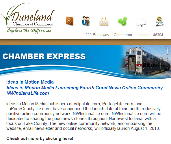 When we let people know of our launch, we were pleased to see such a warm welcome from our friends at the Greater Portage Chamber of Commerce, Michigan City Area Chamber of Commerce, Greater La Porte Chamber of Commerce, Duneland Chamber of Commerce, and Northwest Indiana Regional Development Authority.