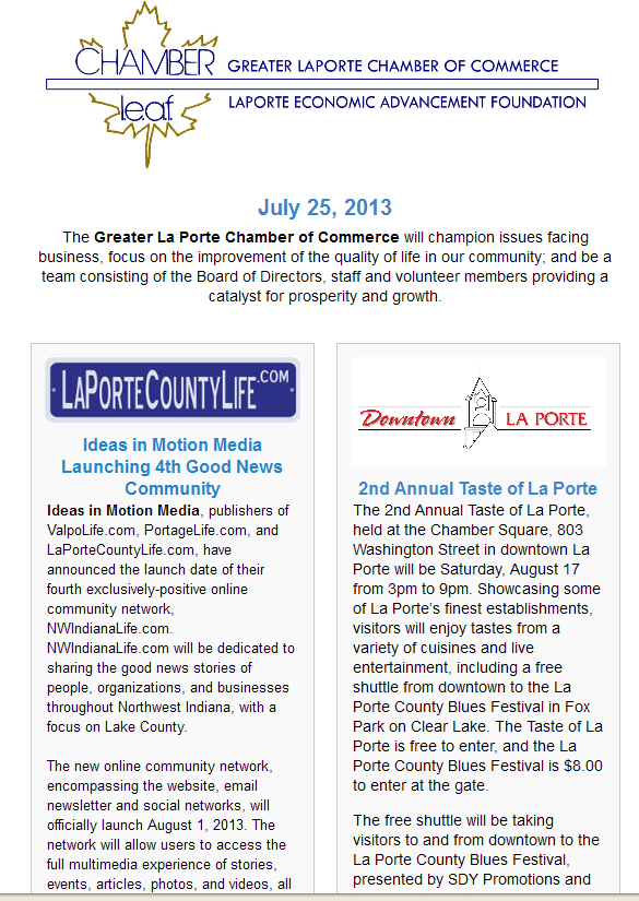 Thanks to these organizations and to all of the individuals who reached out to us on Facebook, Twitter, Google+ and LinkedIn to wish NWIndianaLife.com a warm welcome when we launched on August 1st!