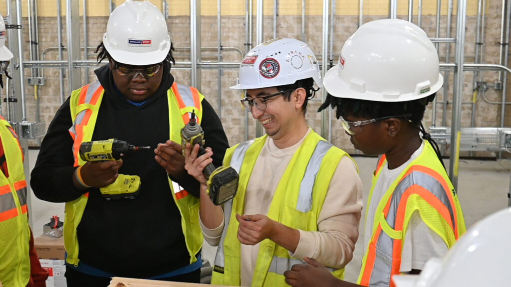 The CONSTRUCT program, which stands for Creating Opportunities for New Students To Reveal Underrepresented Construction Talent, is a 20-session initiative for middle and high school members. To prepare participants for real-world experience, they are issued a hard hat, safety vest, and safety glasses before visiting the active construction site. Sessions begin with safety talks and site visits, followed by introductions to different trades, power and handheld tool use, design and engineering, and financial literacy. Program leaders also help participants develop a path toward a potential construction career.