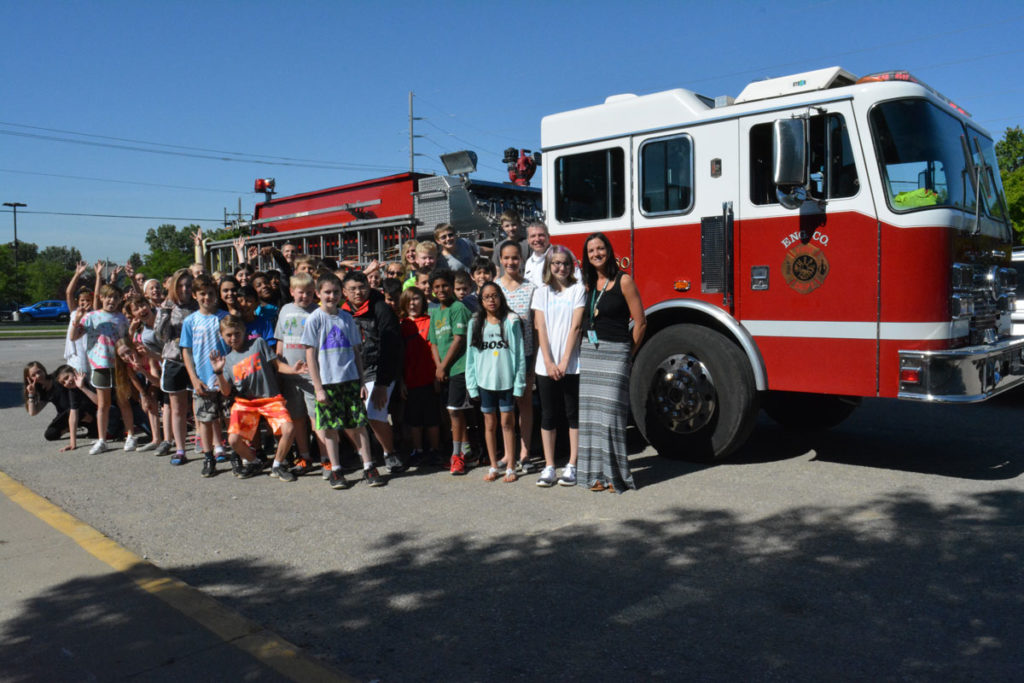 Fifth-grader Aidan Taskoff was late to Cooks Corner Elementary School this morning, but he didn’t get in trouble for it. Instead, friends waved and cheered as Aidan, Chris Fisher and Ella Siewin arrived to school in a fire truck with its sirens blaring for …
